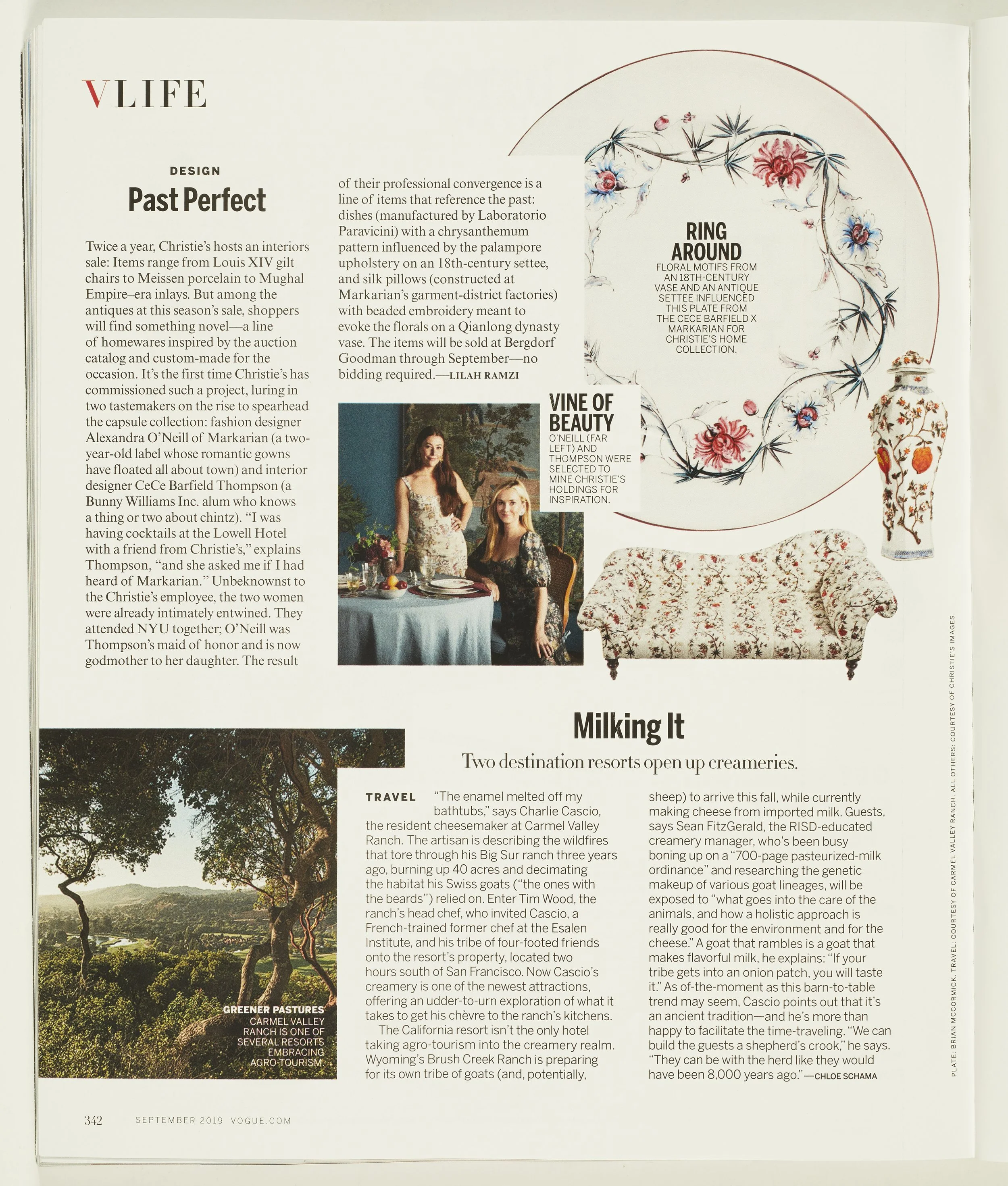 Interior designer CeCe Barfield Thompson and Alexandra O’Neill of Markarian, photographed for their Christie’s collections in Semptember 2019 Vogue.